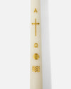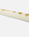 Designed in timeless gold, this elegant candle features ancient Christian symbols that speak to the eternal promise of Baptism.