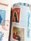 An absolutely stunning swaddle featuring a lovely postage stamp theme of Marian Apparitions. We love this new design!